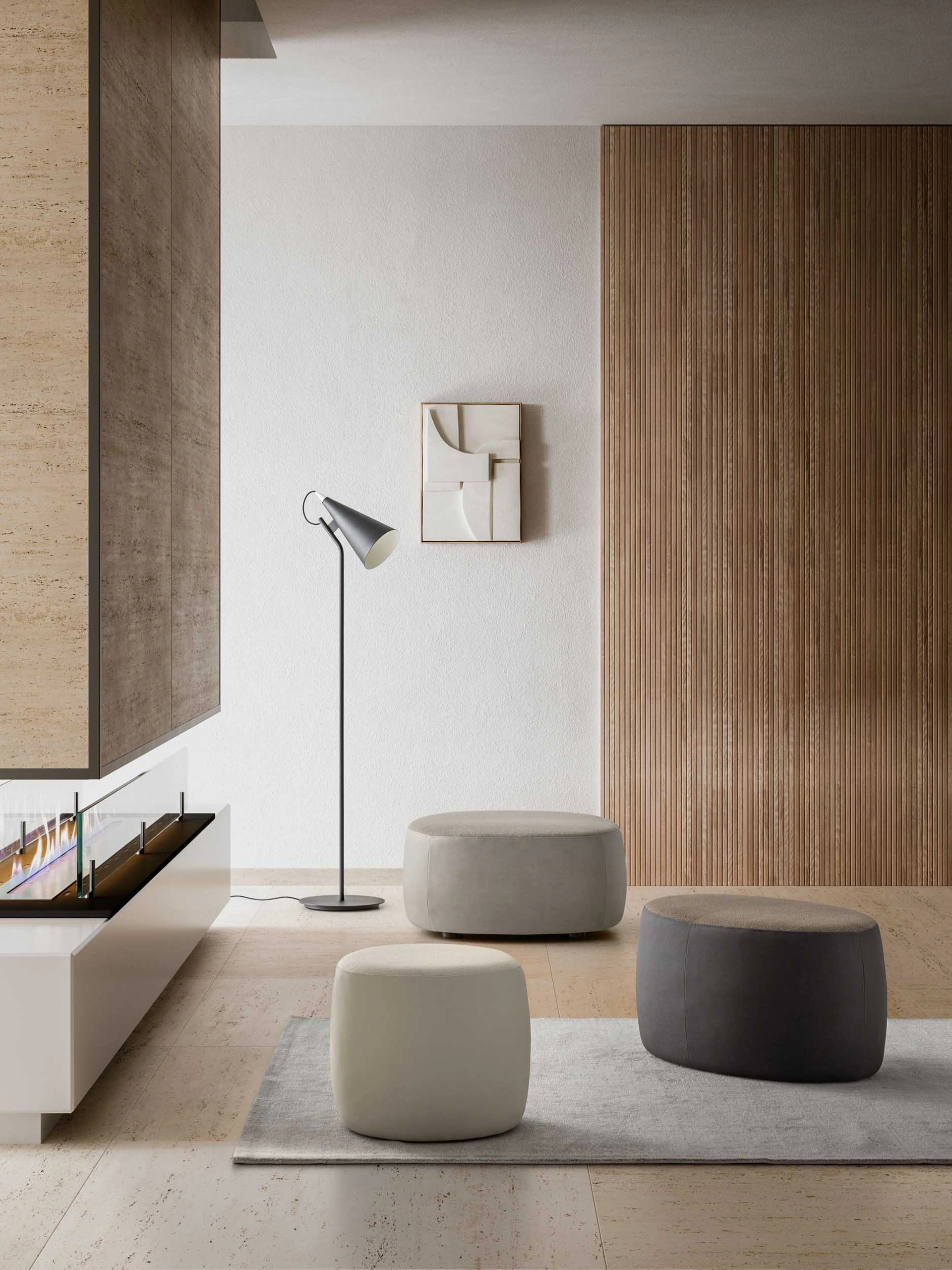 Pouf Bowl, Circus e Wilson di Le Comfort in tessuto: darà carattere e charme a un interno arredato con mobili e complementi dai richiami moderni. Complementi e pouf completano l'arredo di casa, riempiendo lo spazio in modo utile e rendendolo assai funzionale e bello da vedere. Particolarmente versatili e plurifunzionali, i Complementi moderni in tessuto assolvono a funzioni differenti: ultimano le doti di funzionalità e il valore estetico dell'ambiente. Nel nostro showroom potrai vedere dal vivo la qualità dei modelli di pouf moderni in tessuto della firma, proprio come questa soluzione in foto. Le composizioni di alto valore estetico del brand Le Comfort personalizzano l'ambiente con i loro colori e stile, ricreando particolari atmosfere arredative.