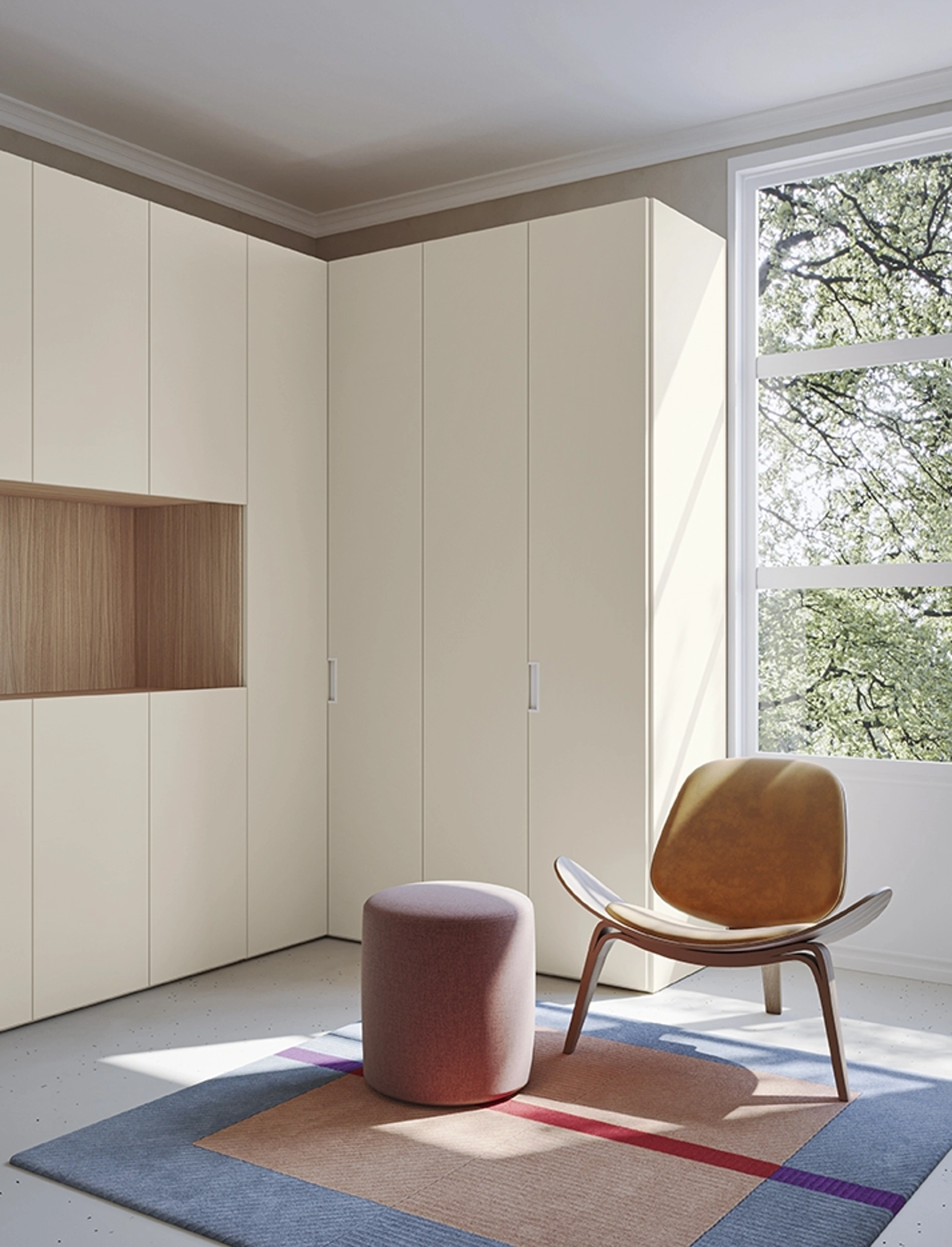 Ecco qui l'armadio Concreta N23 in melaminico di Colombini Casa! Un ricco catalogo di armadi ad angolo con ante battenti.