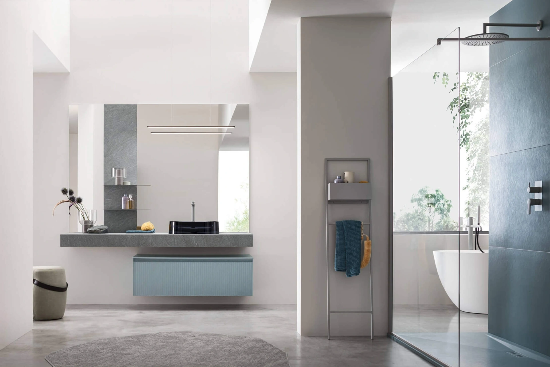 Arreda il bagno di casa moderno ottimamente con Shape 22, mobili bagno sospesi e complementi in laccato opaco di Arcom.