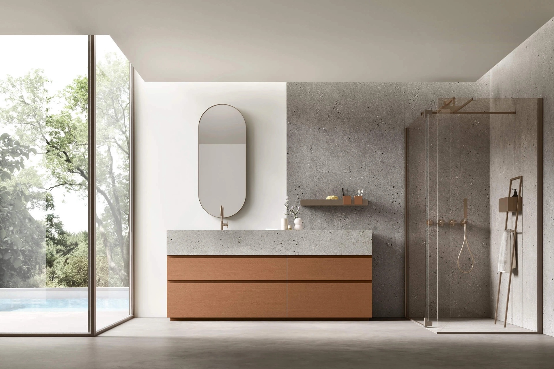 mobili bagno a terra Soul 15 di Arcom: scopri l'Arredo Bagno in legno moderno e arreda il bagno di casa.