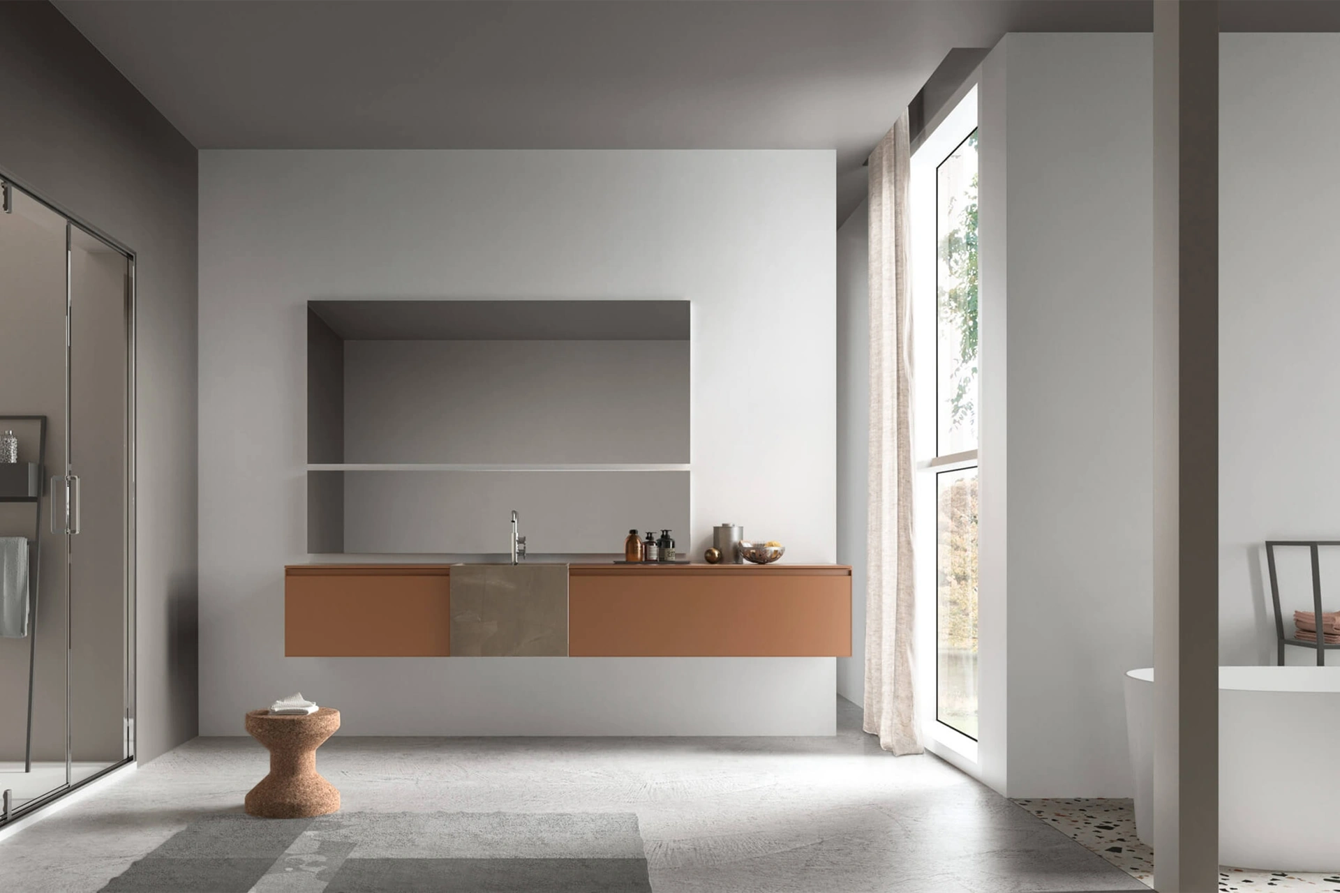 Scopri di più sull'arredo bagno moderno: mobili bagno sospesi in laccato opaco come il modello Shape 14 di Arcom ti attendono.