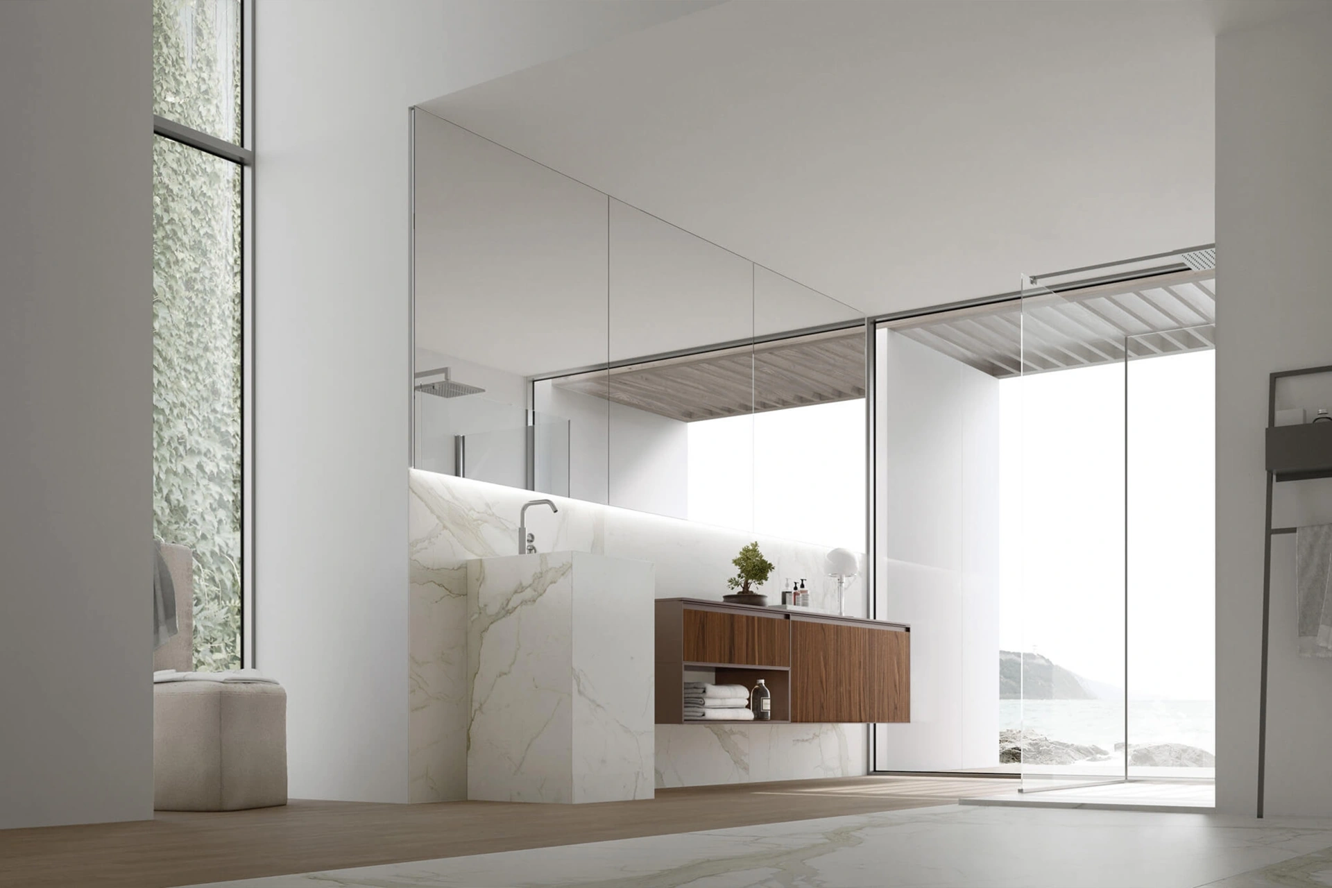 mobili bagno sospesi Shape 25 di Arcom: scopri l'Arredo Bagno in legno moderno e arreda il bagno di casa.