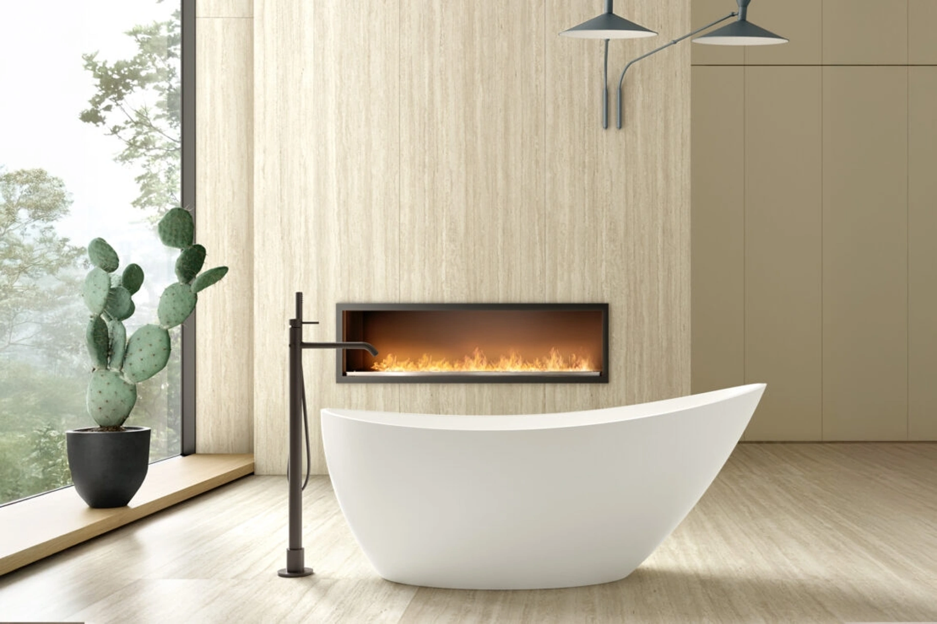 Arreda la stanza del benessere design alla perfezione con Vasca Chloe, sanitari e accessori in resina minerale di Arcom.
