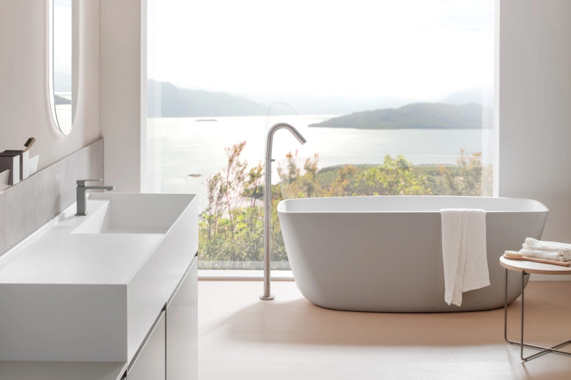 Arreda il bagno di casa design al meglio con Vasca Victoria, sanitari e accessori in resina minerale di Arcom.