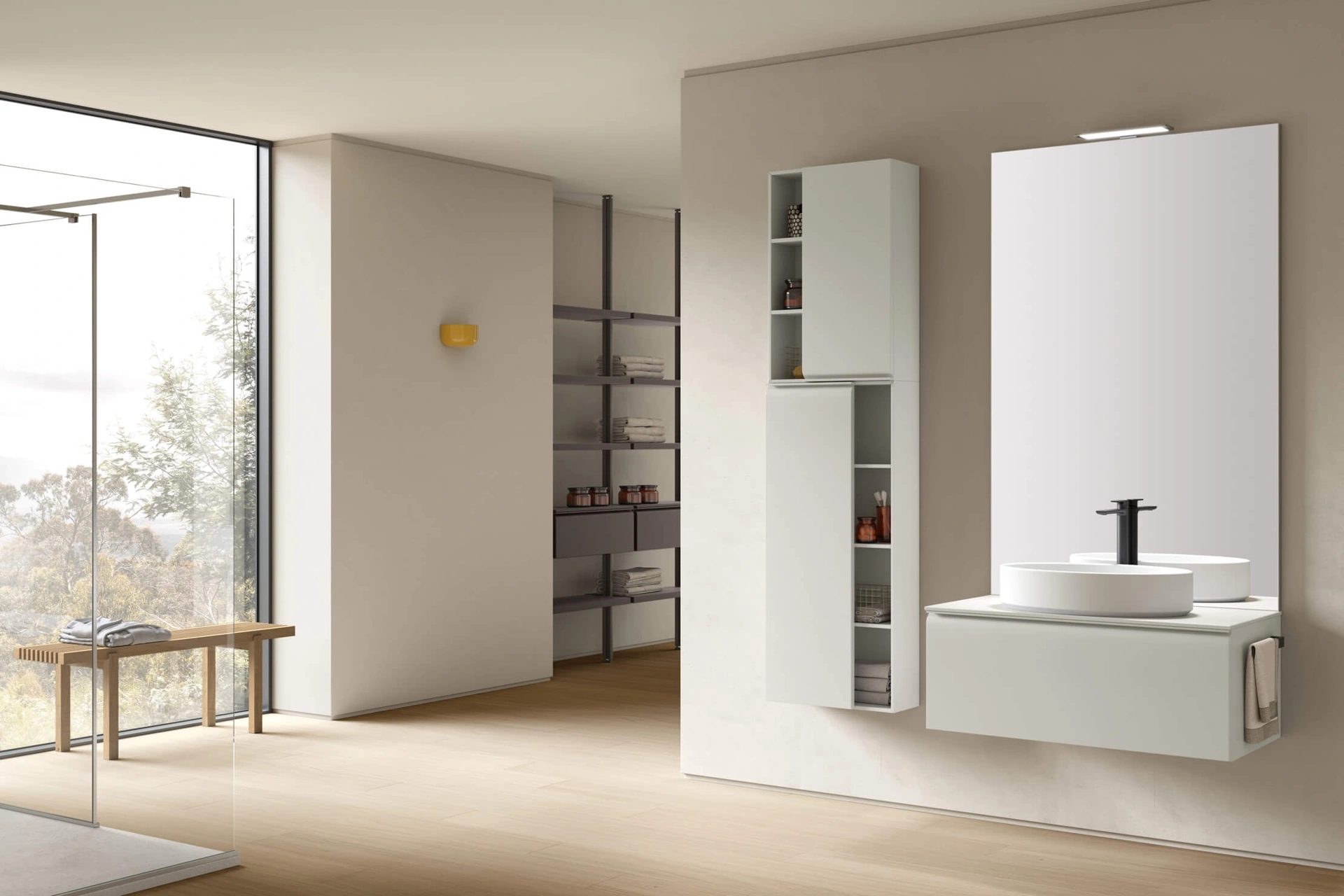 Scopri di più sull'arredo bagno moderno: mobili bagno sospesi in laccato opaco come il modello Virgola 05 di Arcom ti aspettano.