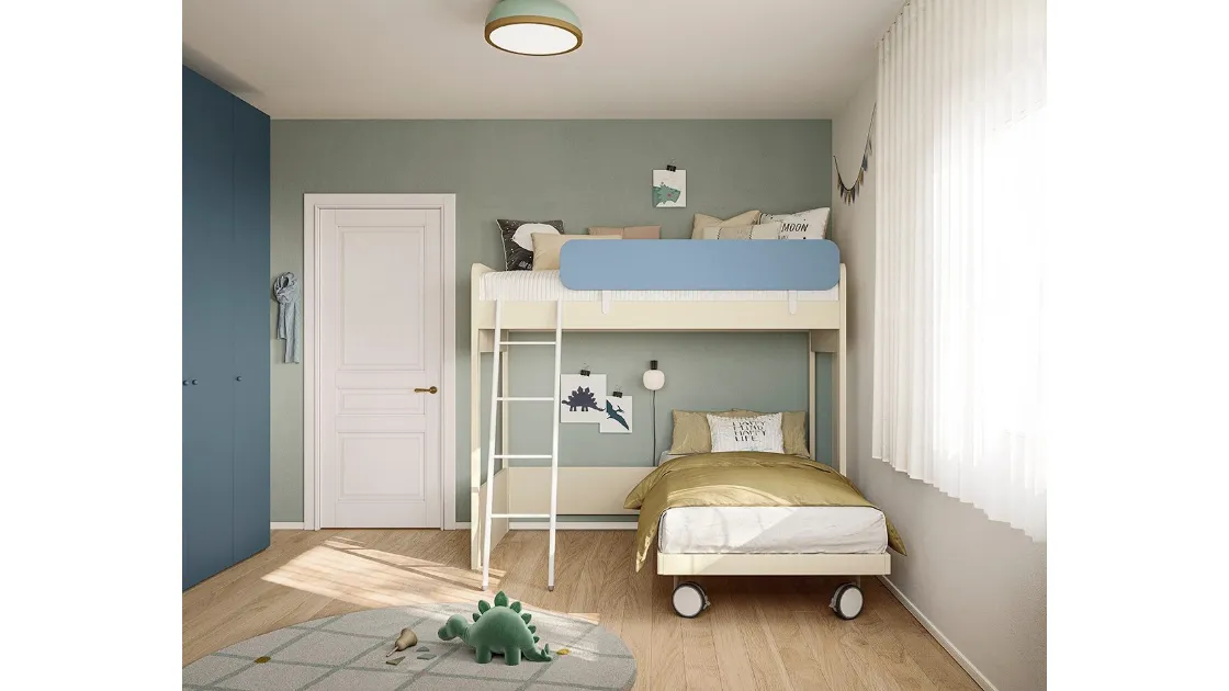 Con questa cameretta Golf K34 Colombini Casa, tra le soluzioni con letti a castello, potrai progettare stanze moderne per bambini.