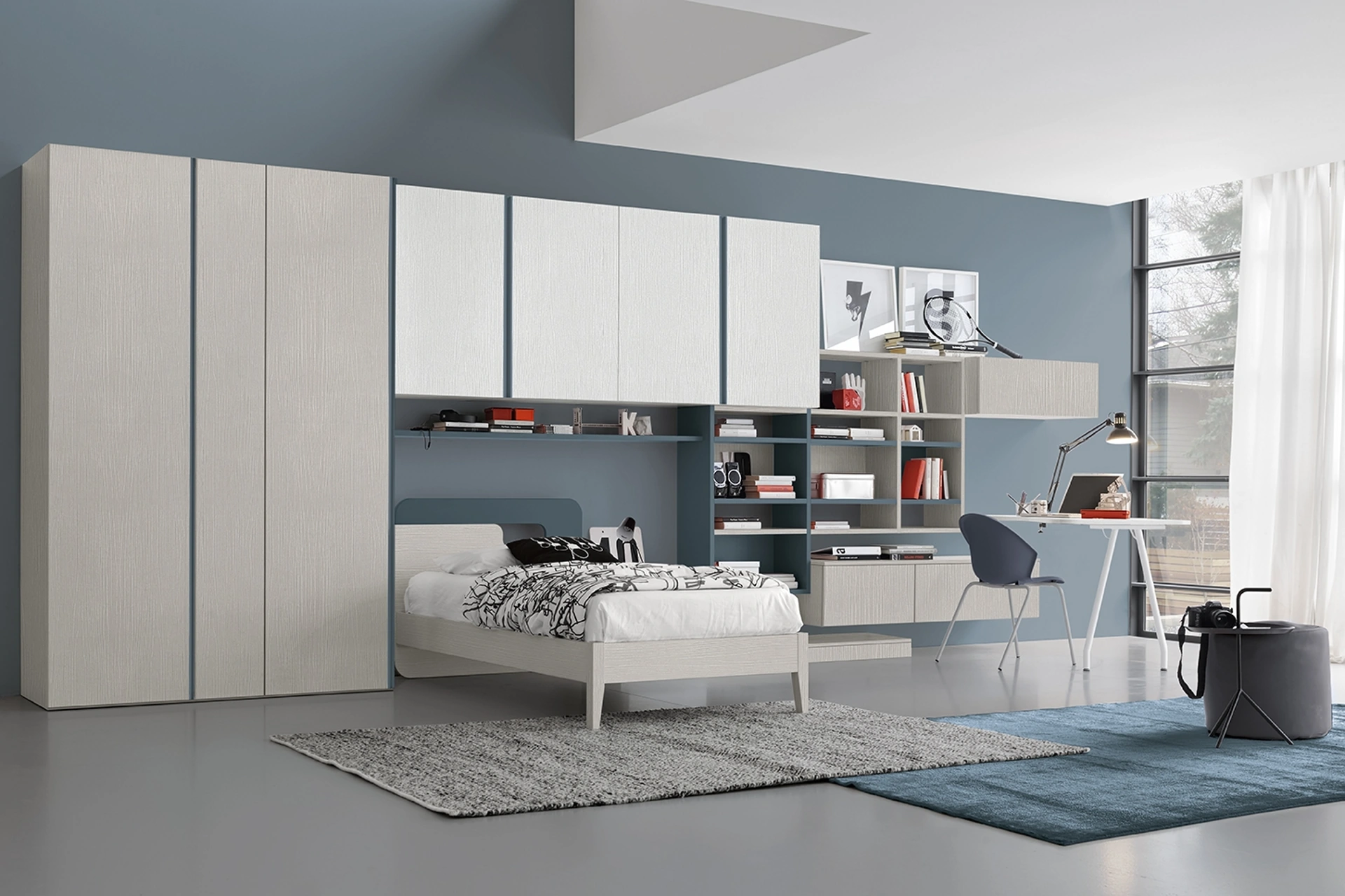 Con questa cameretta Golf Y31 Colombini Casa, tra le soluzioni a ponte, potrai allestire stanze moderne per ragazzi.