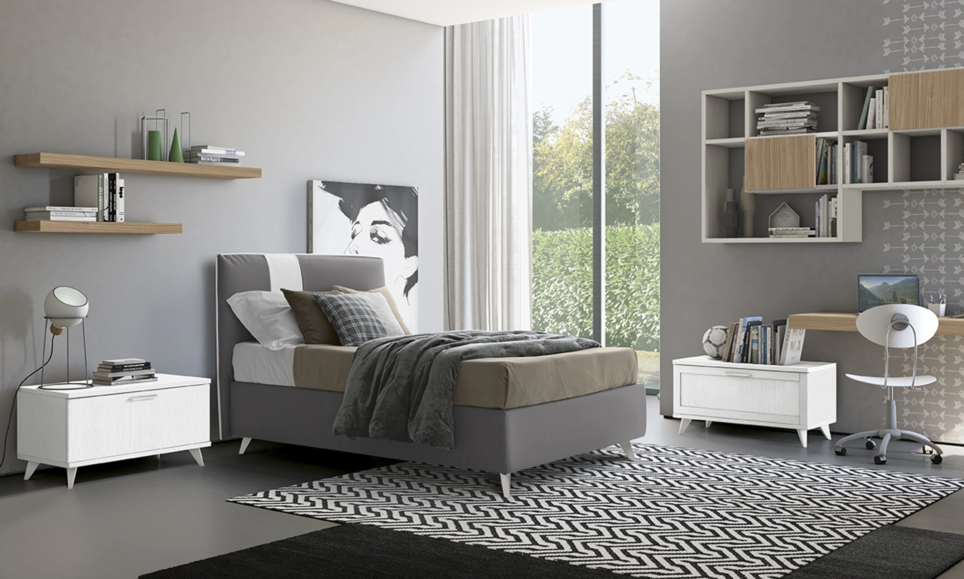 Con questa cameretta Golf Y32 Colombini Casa, tra le soluzioni componibili, potrai allestire stanze moderne per ragazzi.