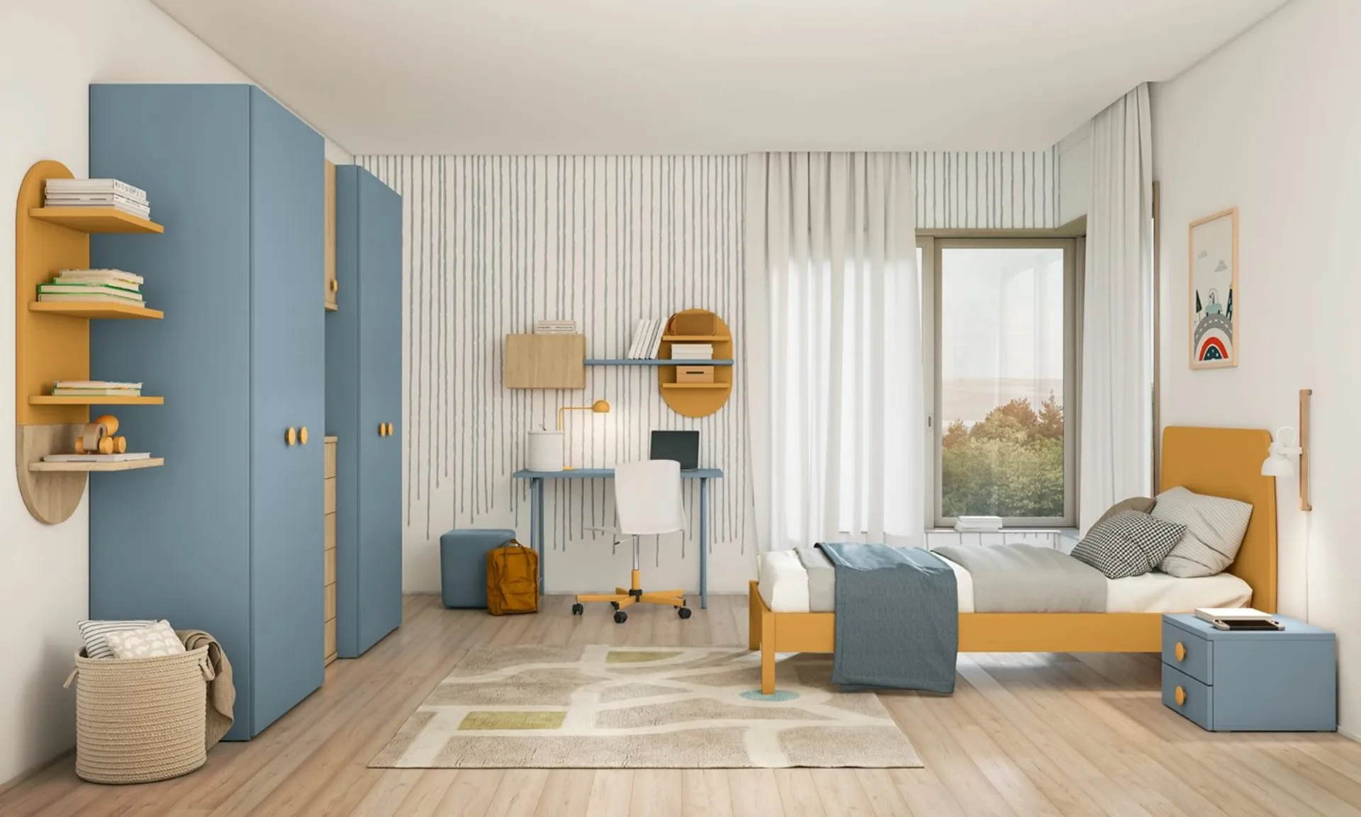 Camerette componibili per ragazzi: scopri il modello in melaminico Volo Kid C006 di Colombini Casa per stanzette moderne.