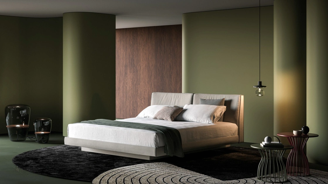 Vuoi attualizzare la camera da letto? Ecco qui il letto in tessuto Domus di Biba Salotti per spazi moderni.