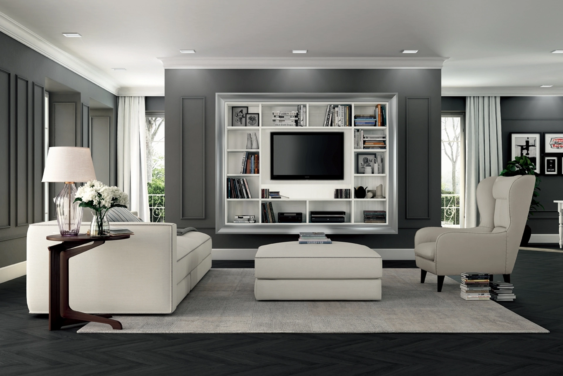 Materiali di pregio e linee decise: scopri la libreria Arcadia AS007 di Colombini Casa tra le più esclusive Librerie classiche sospese.