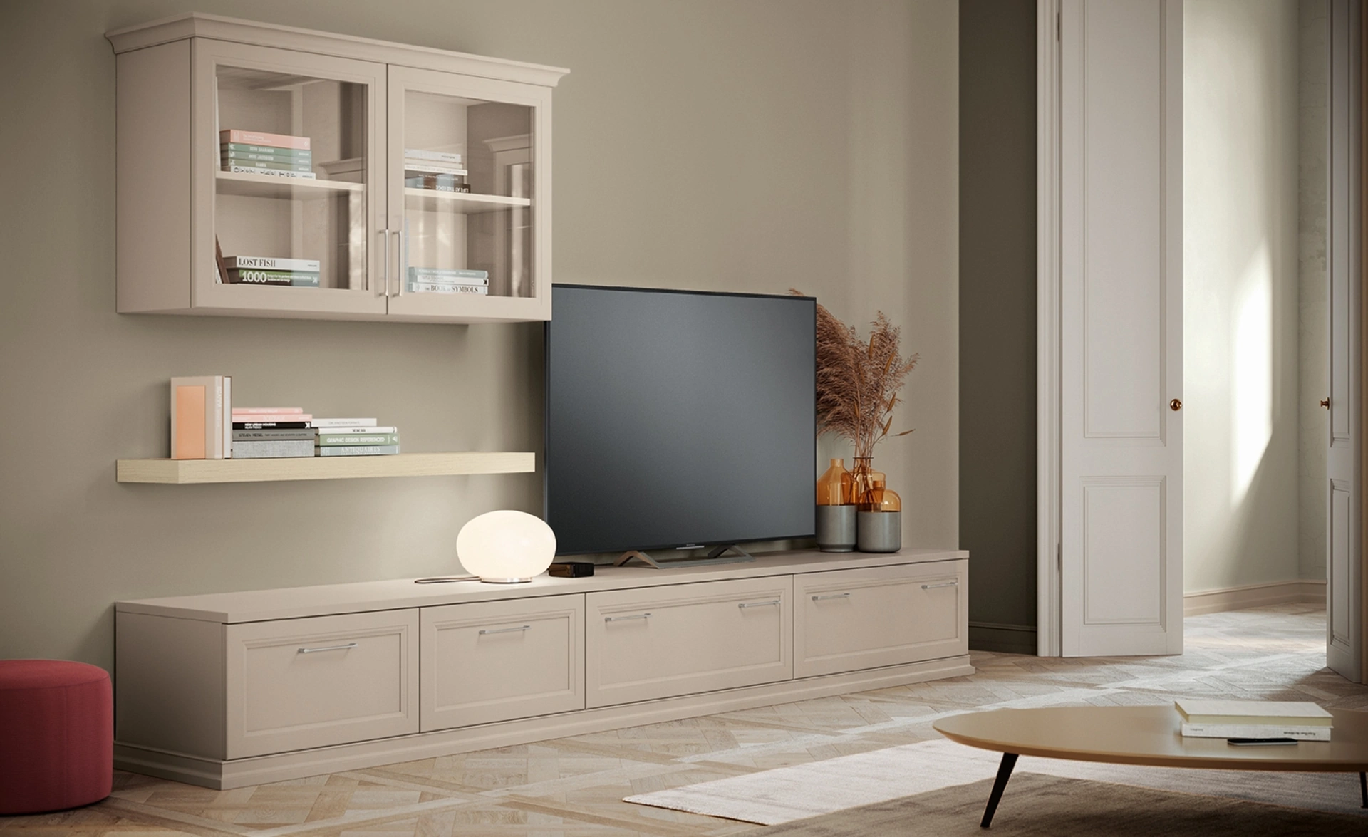 Clicca e scopri di più sulla parete attrezzata Arcadia AS010 dell'azienda Colombini Casa: è la soluzione dalle linee classiche ideale per te.