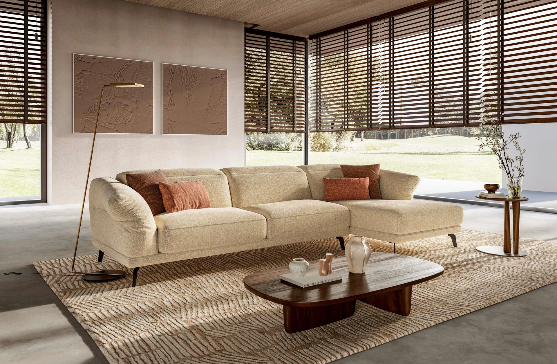 Se vuoi divani per salotti moderni, clicca e leggi di più sul modello Sky in tessuto della marca Le Comfort.