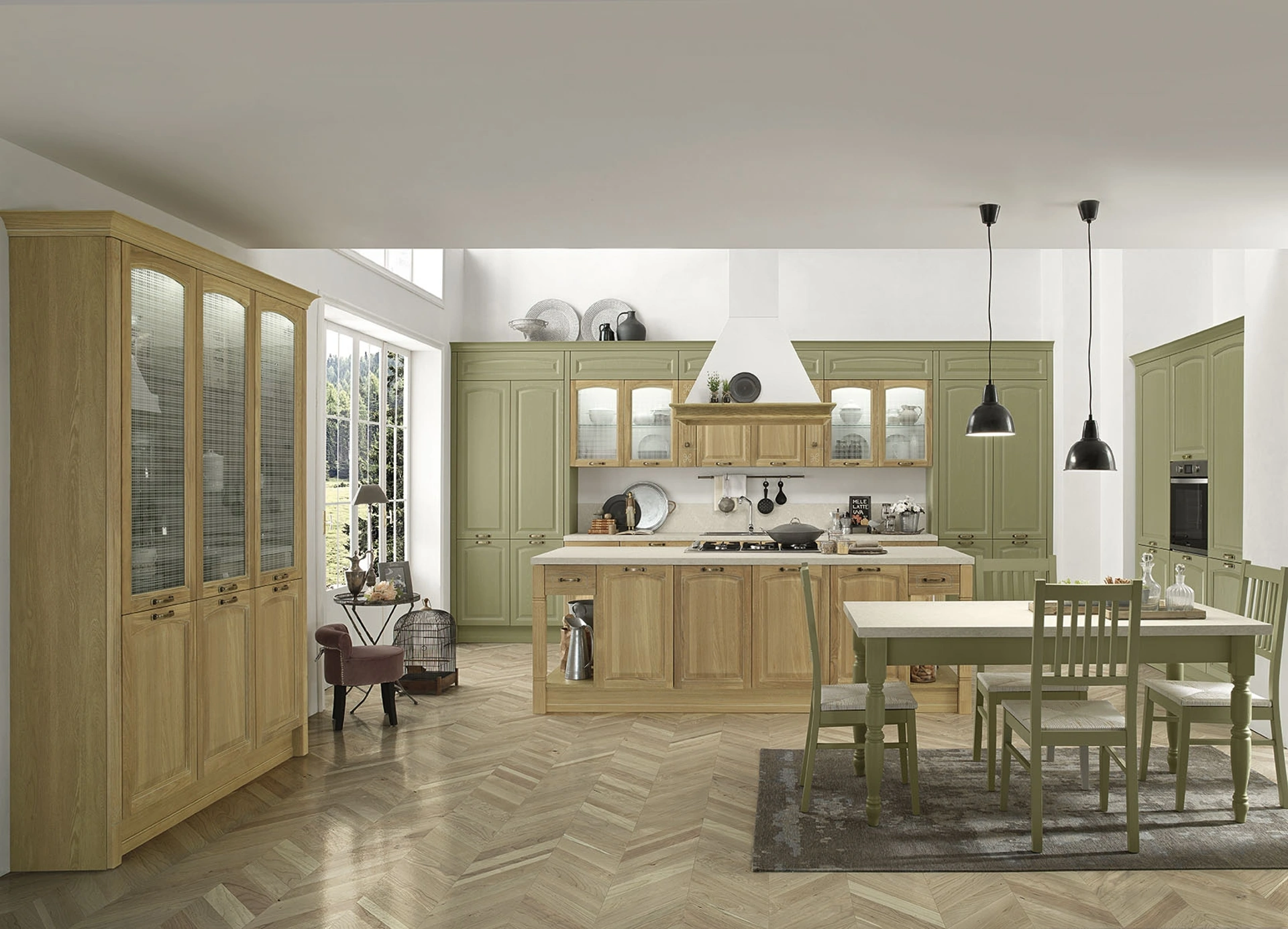Colombini Casa Artec studia attentamente l’evoluzione di un habitus vivendi in costante cambiamento, per dare vita a soluzioni confortevoli sempre al passo con i nuovi trend ma di spiccato stile classico. Le più originali Cucine Classiche con isola ti attendono per completare l'ambiente secondo la moderna evoluzione dell'arredo con uno stile classico senza tempo. Scopri la Cucina Classica con isola Mida 08 di Colombini Casa Artec in foto: lasciati stuzzicare dalle linee sinuose di questo modello in legno.