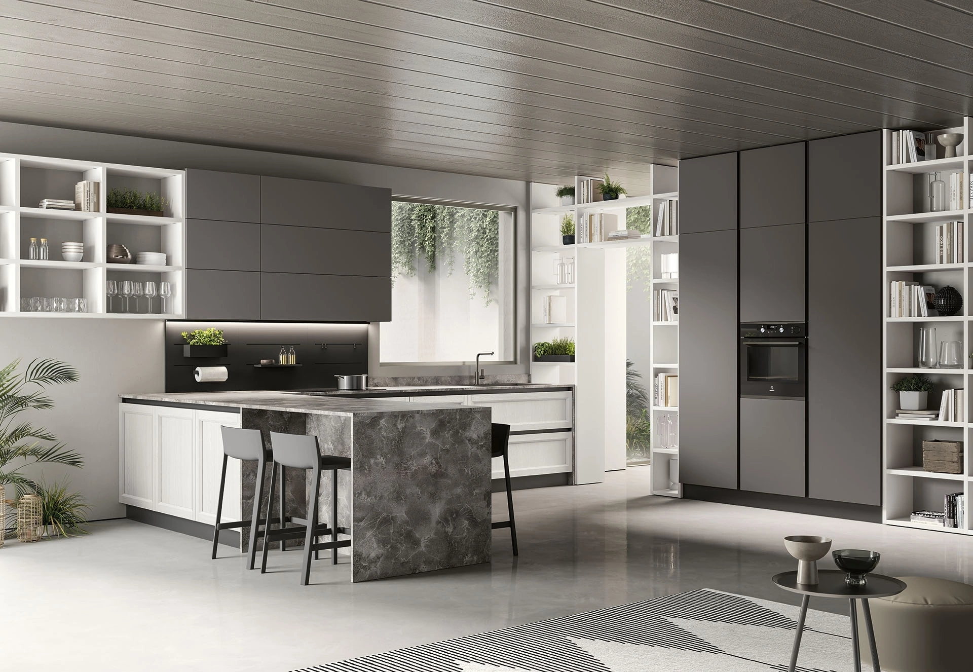 Se desideri una cucina moderna Colombini Kitchen, Futura 14 in legno ti attende nel nostro negozio di Cucine Moderne con penisola.
