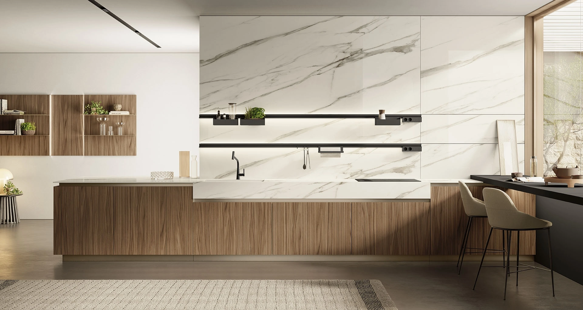 Cucine Moderne con penisola: clicca e scopri una ricca gamma di soluzioni del brand Colombini Casa Artec, tra cui il modello Lungomare Plus Cannettato 03.
