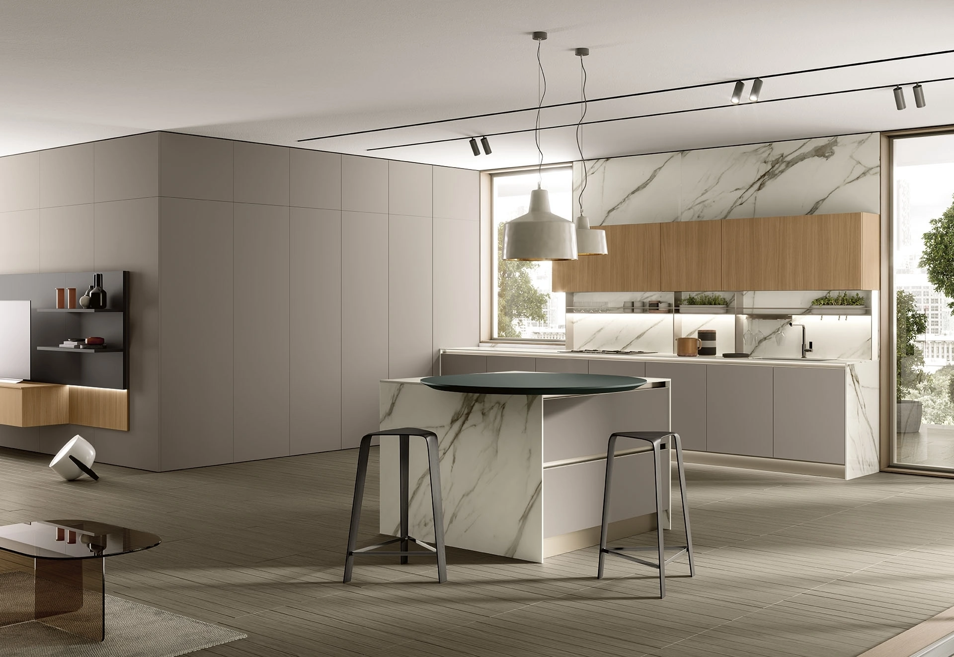 Se vuoi una cucina moderna Colombini Kitchen, Segno 04 in melaminico ti aspetta nel nostro negozio di Cucine Moderne con isola.