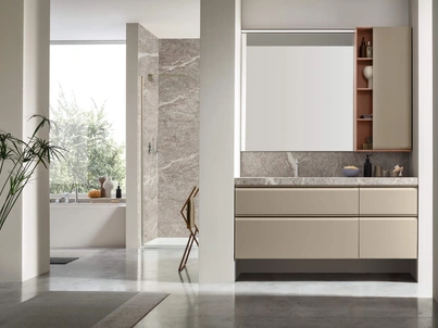 Ottieni informazioni sull'arredo bagno moderno: mobili bagno sospesi in laccato opaco come il modello Pollock 01 di Arcom ti aspettano.